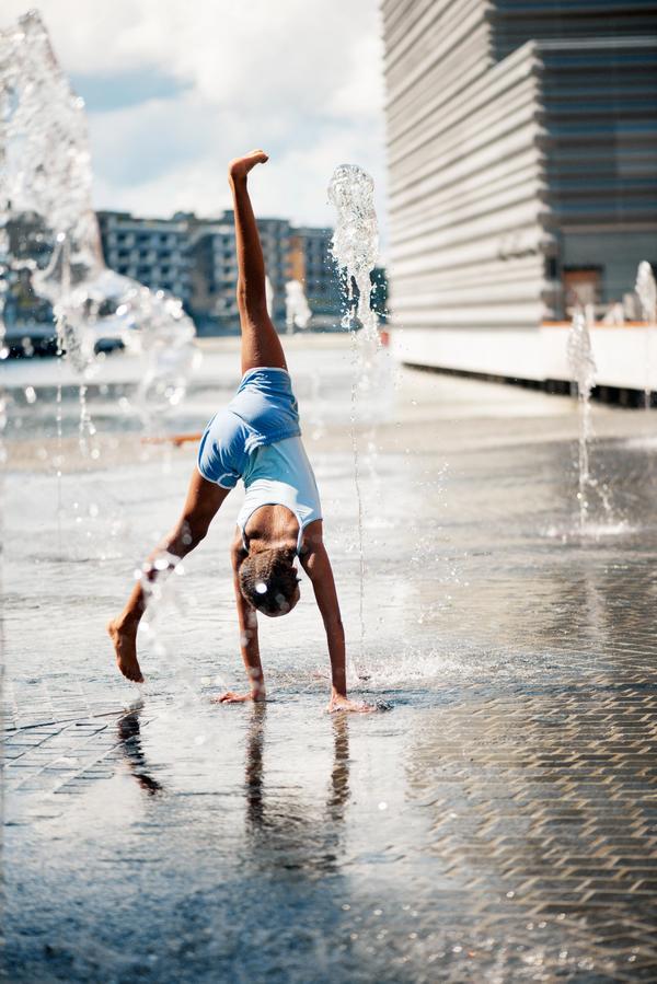Når solen står på er det ikke dumt å kunne kjøle seg ned og leke samtidig! I fontenen på Stasjonsallmenningen spruter vannstrålene opp både høyt og lavt når du minst aner det. Her kan de lekelystene plaske rundt, mens landkrabbene kan ta en pust i bakken ved siden av og nyte utsikten.